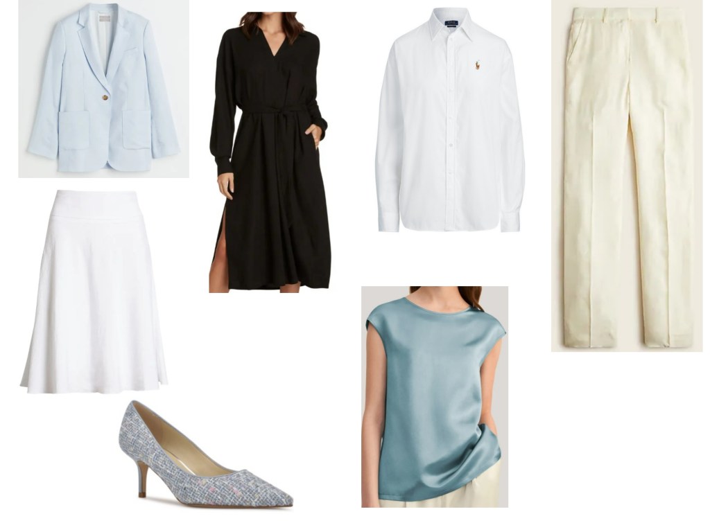 In early March I shared a blog post all about business casual wardrobe staples, but I wanted to do a separate post for workwear staples for warm weather. I found it particularly difficult to dress business casual and business professional in hot weather. I found the key to navigating this is to find pieces in lighter fabrics (rayon, silk, chiffon, linen blends) and lighter brighter colors.