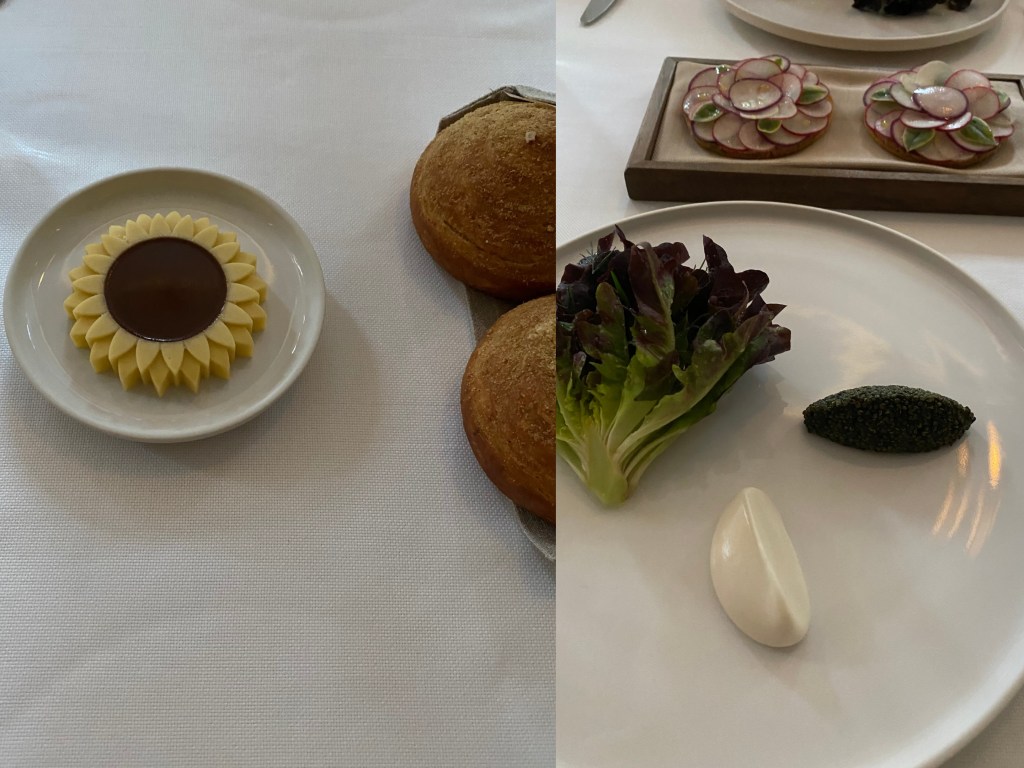 Eleven Madison Park is the first 3 Star Michelin restaurant I’ve been to. If you are unfamiliar with the Michelin Star rating system, they only go up to 3 stars. This is one of the top rated restaurants in a city known for good food. This is a plant based restaurant and I had to keep reminding myself of that throughout the meal because it was hard to believe at times. I love going to restaurants that challenge my view of food and this place did that. We opted for the main dining room menu tasting which is nine to ten courses. My husband opted for the wine pairing with the meal and found the wines to be good, but thought it was a little lack luster. I personally skipped the wine pairing because I don’t drink much and there is no way I could handle a glass of wine with each course LOL.