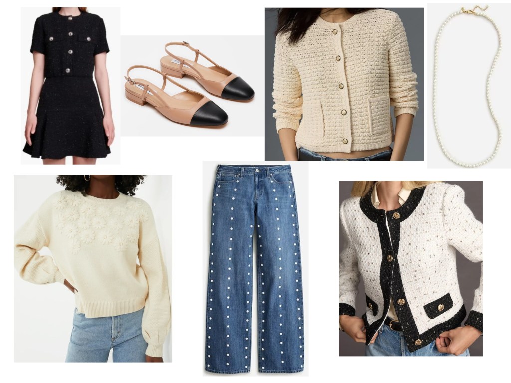 I love Chanel and own a few pieces but the reality is Chanel ready to wear is out of my price range for clothing items. I’m also simple not willing to spend a ton of money on a single item of clothing. While I am adamantly against buying knockoffs, I love clothing and accessories inspired buy luxury designer brands. When I think of Chanel I think of great textured clothing like tweed, camellias, and pearls. Below are some pieces that feel very Chanel.